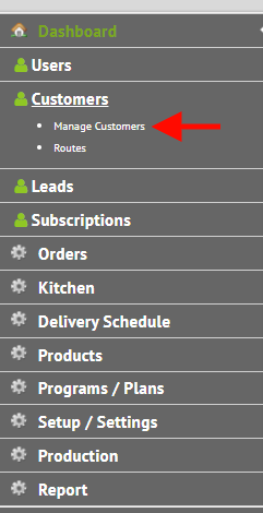 1. Navigate to the CUSTOMERS section of the Navigation Bar and click MANAGE CUSTOMERS