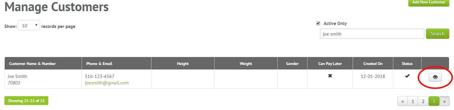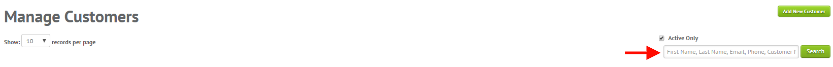 - Ability to search using First Name, Last Name, Email, Phone, Customer Number