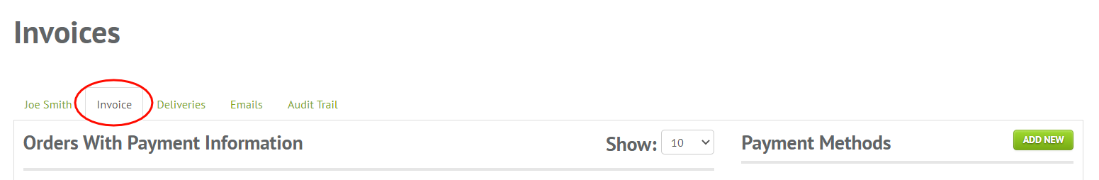 2. Click the Invoice Tab at the top of the Customer's Dashboard