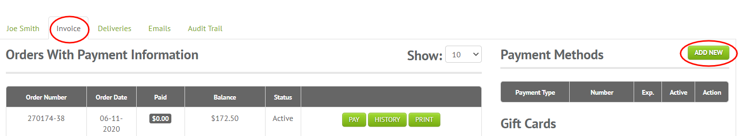 2. Click the Invoice Tab at the top of the Customer's Dashboard