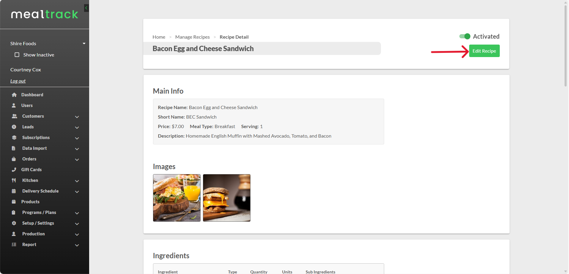 2. On the Recipe Details page, click on the green button labeled "Edit Recipe" in the top right-hand corner of the page.