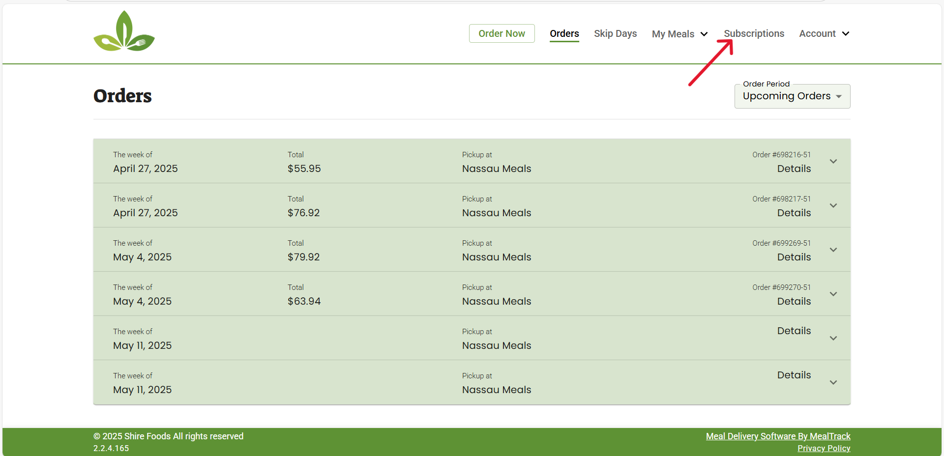 3. You may now edit your subscription in the following ways:You can add meals to your order by clicking on the "+" button.